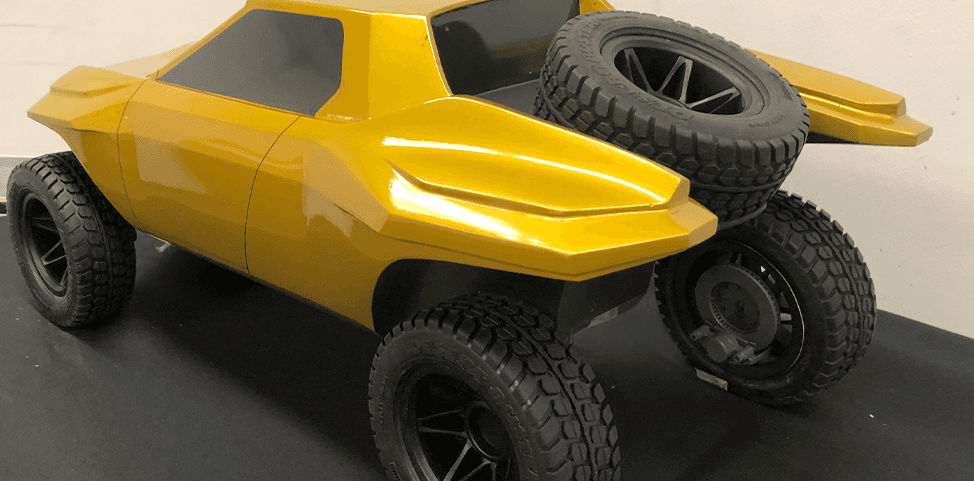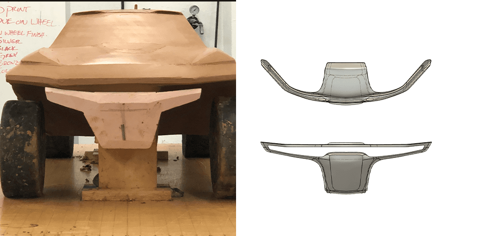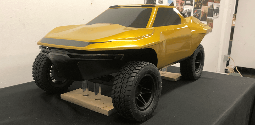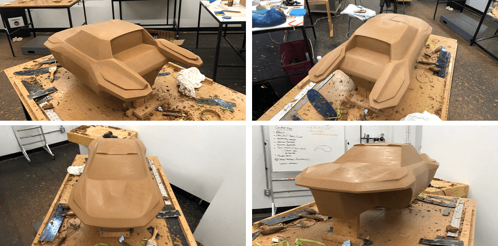 Unlike traditional digital-only concept work, this Baja racer project was grounded in model making and iterative prototyping. Early sketches helped establish direction, but the final form was discovered through building—sculpting, testing, and refining components in real space.